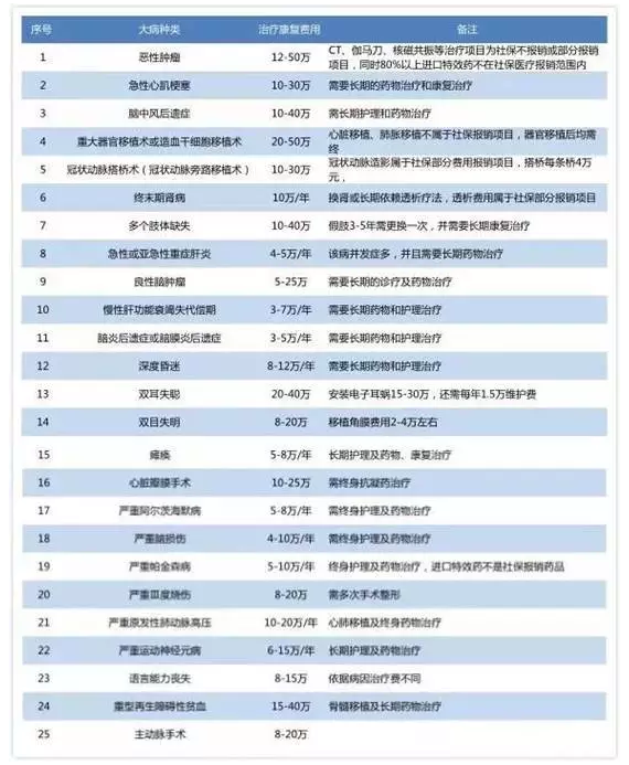 保險(xiǎn)行業(yè)協(xié)會與中國醫(yī)師協(xié)會共同制定了重大疾病的定義,對25種重大疾病的定義基本相同。 25種最嚴(yán)重的疾病占保險(xiǎn)理賠的95%以上,前6位流行率高達(dá)80%。