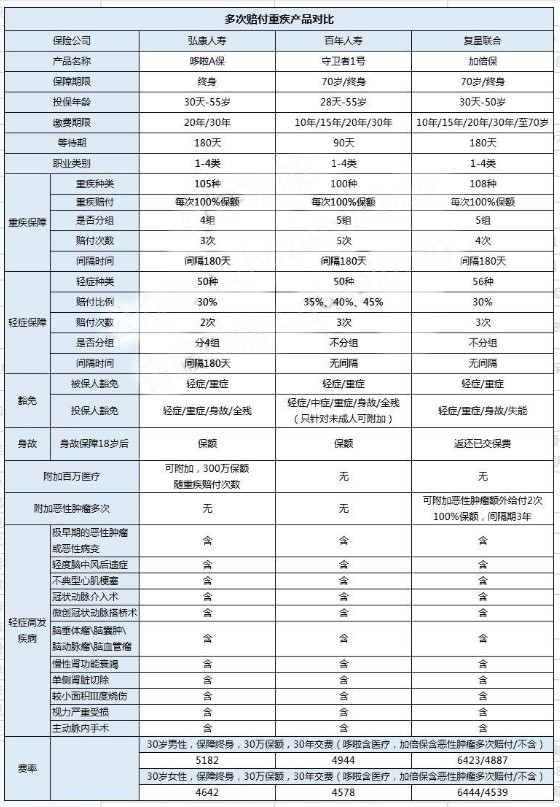哆啦a保、守衛(wèi)者1號、加倍保三款多次賠付重疾險測評