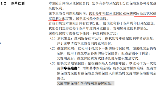 保險公司的收益是根據(jù)經(jīng)營狀況來決定的,各行各業(yè)不能保證自己一定盈利、盈利多少,保險公司也不例外,保險公司不能確定自己盈利多少,所以保險公司設(shè)定一個保底利率,也就是最低收益,多數(shù)是2%左右,能夠達到3%以上的就是很不錯的產(chǎn)品了。以某安公司產(chǎn)品為例: